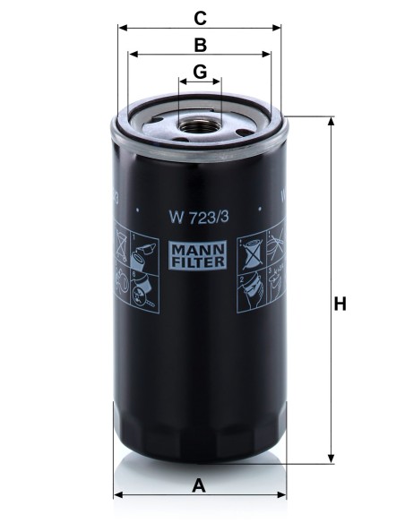 • A = 76 mm C = 72 mm B = 63 mm H = 141 mm J = 0.7 bar G = 3/4-16 UNF-1B